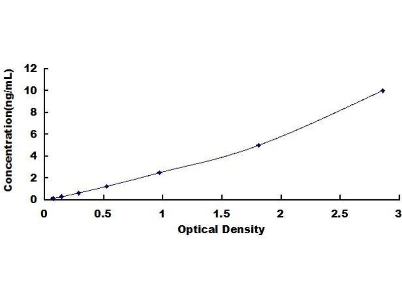 - Standard - Reconstitute the Standard with 1.0 mL of Standard Diluent, keep for 10 minutes at room temperature, shake gently (not to foam). The concentration of the standard in the stock solution is 80 ng/mL. Firstly dilute the stock solution to 10 ng/mL and the diluted standard serves as the highest standard (10 ng/mL). Then prepare 7 tubes containing 0.5 mL Standard Diluent and use the diluted standard to produce a double dilution series. Mix each tube thoroughly before the next transfer. Set up 7 points of diluted standard such as 10 ng/mL, 5 ng/mL, 2.5 ng/mL, 1.25 ng/mL, 0.625 ng/mL, 0.312 ng/mL, 0.156 ng/mL, and the last microcentrifuge tube with Standard Diluent is the blank as 0 ng/mL.