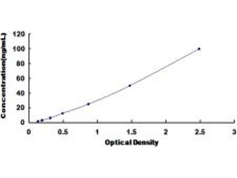 - Standard - Reconstitute the Standard with 1.0 mL of Standard Diluent, keep for 10 minutes at room temperature, shake gently (not to foam). The concentration of the standard in the stock solution is 500 ng/mL. Firstly dilute the stock solution to 100 ng/mL and the diluted standard serves as the highest standard (100 ng/mL). Then prepare 7 tubes containing 0.5 mL Standard Diluent and use the diluted standard to produce a double dilution series. Mix each tube thoroughly before the next transfer. Set up 7 points of diluted standard such as 100 ng/mL, 50 ng/mL, 25 ng/mL, 12.5 ng/mL, 6.25 ng/mL, 3.12 ng/mL, 1.56 ng/mL, and the last microcentrifuge tube with Standard Diluent is the blank as 0 ng/mL.