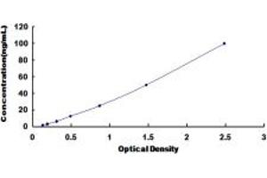 2. Standard - Reconstitute the Standard with 1.0 mL of Standard Diluent, keep for 10 minutes at room temperature, shake gently (not to foam). The concentration of the standard in the stock solution is 500 ng/mL. Firstly dilute the stock solution to 100 ng/mL and the diluted standard serves as the highest standard (100 ng/mL). Then prepare 7 tubes containing 0.5 mL Standard Diluent and use the diluted standard to produce a double dilution series. Mix each tube thoroughly before the next transfer. Set up 7 points of diluted standard such as 100 ng/mL, 50 ng/mL, 25 ng/mL, 12.5 ng/mL, 6.25 ng/mL, 3.12 ng/mL, 1.56 ng/mL, and the last microcentrifuge tube with Standard Diluent is the blank as 0 ng/mL.