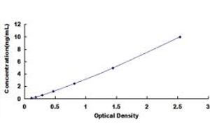 2. Standard - Reconstitute the Standard with 1.0 mL of Standard Diluent, keep for 10 minutes at room temperature, shake gently (not to foam). The concentration of the standard in the stock solution is 10 ng/mL. Prepare 7 tubes containing 0.5 mL Standard Diluent and produce a double dilution series. Mix each tube thoroughly before the next transfer. Set up 7 points of diluted standard such as 10 ng/mL, 5 ng/mL, 2.5 ng/mL, 1.25 ng/mL, 0.625 ng/mL, 0.312 ng/mL, 0.156 ng/mL, and the last microcentrifuge tube with Standard Diluent is the blank as 0 ng/mL.