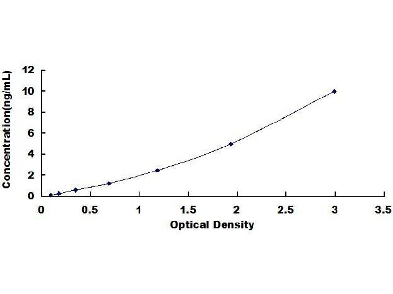 - Standard - Reconstitute the Standard with 1.0 mL of Standard Diluent, keep for 10 minutes at room temperature, shake gently (not to foam). The concentration of the standard in the stock solution is 40 ng/mL. Firstly dilute the stock solution to 10 ng/mL and the diluted standard serves as the highest standard (10 ng/mL). Then prepare 7 tubes containing 0.5 mL Standard Diluent and use the diluted standard to produce a double dilution series. Mix each tube thoroughly before the next transfer. Set up 7 points of diluted standard such as 10 ng/mL, 5 ng/mL, 2.5 ng/mL, 1.25 ng/mL, 0.625 ng/mL, 0.312 ng/mL, 0.156 ng/mL, and the last microcentrifuge tube with Standard Diluent is the blank as 0 ng/mL.