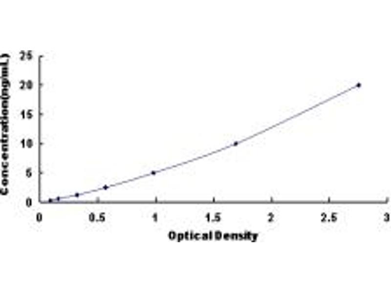 2. Standard - Reconstitute the Standard with 1.0 mL of Standard Diluent, keep for 10 minutes at room temperature, shake gently (not to foam). The concentration of the standard in the stock solution is 40 ng/mL. Firstly dilute the stock solution to 20 ng/mL and the diluted standard serves as the highest standard (20 ng/mL). Then prepare 7 tubes containing 0.5 mL Standard Diluent and use the diluted standard to produce a double dilution series. Mix each tube thoroughly before the next transfer. Set up 7 points of diluted standard such as 20 ng/mL, 10 ng/mL, 5 ng/mL, 2.5 ng/mL, 1.25 ng/mL, 0.625 ng/mL, 0.312 ng/mL, and the last microcentrifuge tube with Standard Diluent is the blank as 0 ng/mL.