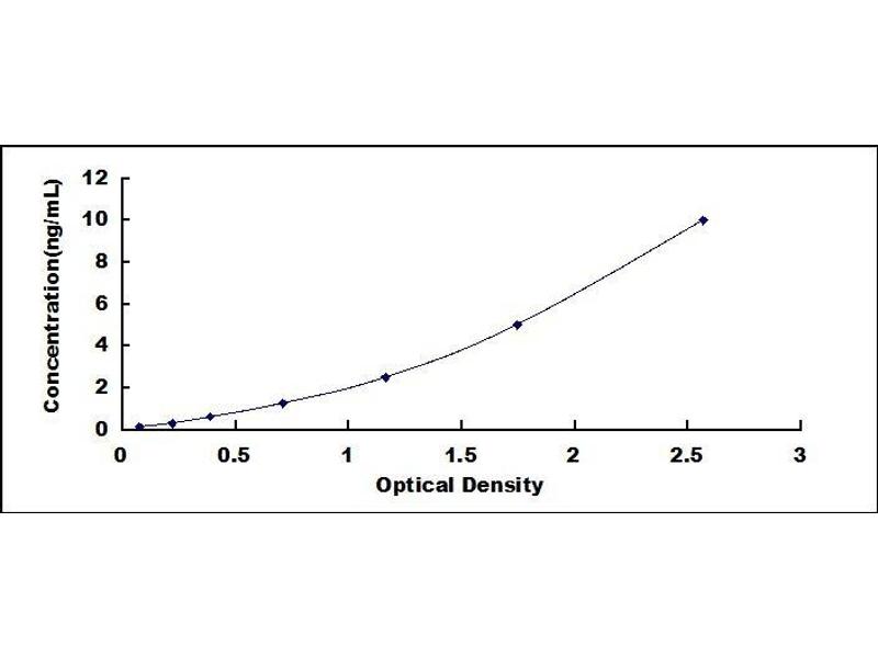 - Standard - Reconstitute the Standard with 1.0 mL of Standard Diluent, keep for 10 minutes at room temperature, shake gently (not to foam). The concentration of the standard in the stock solution is 40 ng/mL. Firstly dilute the stock solution to 10 ng/mL and the diluted standard serves as the highest standard (10 ng/mL). Then prepare 7 tubes containing 0.5 mL Standard Diluent and use the diluted standard to produce a double dilution series. Mix each tube thoroughly before the next transfer. Set up 7 points of diluted standard such as 10 ng/mL, 5 ng/mL, 2.5 ng/mL, 1.25 ng/mL, 0.625 ng/mL, 0.312 ng/mL, 0.156 ng/mL, and the last microcentrifuge tube with Standard Diluent is the blank as 0 ng/mL.