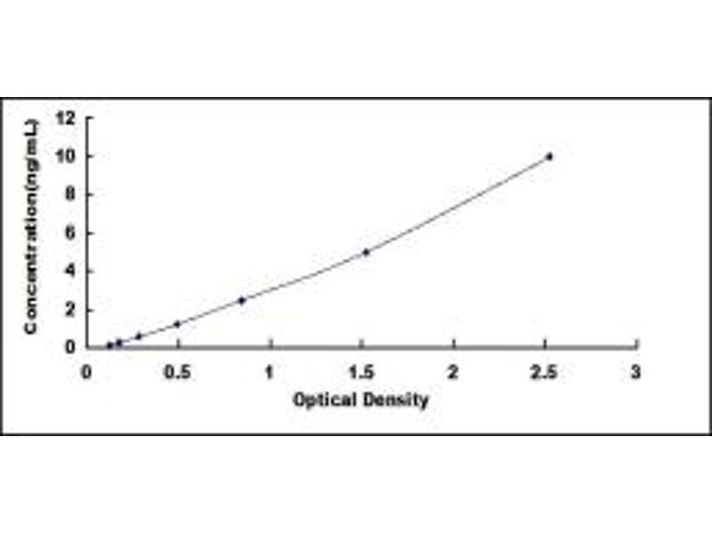 - Standard - Reconstitute the Standard with 1.0 mL of Standard Diluent, keep for 10 minutes at room temperature, shake gently (not to foam). The concentration of the standard in the stock solution is 100 ng/mL. Firstly dilute the stock solution to 10 ng/mL and the diluted standard serves as the highest standard (10 ng/mL). Then prepare 7 tubes containing 0.5 mL Standard Diluent and use the diluted standard to produce a double dilution series. Mix each tube thoroughly before the next transfer. Set up 7 points of diluted standard such as 10 ng/mL, 5 ng/mL, 2.5 ng/mL, 1.25 ng/mL, 0.625 ng/mL, 0.312 ng/mL, 0.156 ng/mL, and the last microcentrifuge tube with Standard Diluent is the blank as 0 ng/mL.
