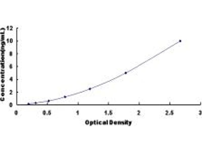 2. Standard - Reconstitute the Standard with 1.0 mL of Standard Diluent, keep for 10 minutes at room temperature, shake gently (not to foam). The concentration of the standard in the stock solution is 10 ng/mL. Prepare 7 tubes containing 0.5 mL Standard Diluent and produce a double dilution series. Mix each tube thoroughly before the next transfer. Set up 7 points of diluted standard such as 10 ng/mL, 5 ng/mL, 2.5 ng/mL, 1.25 ng/mL, 0.625 ng/mL, 0.312 ng/mL, 0.156 ng/mL, and the last microcentrifuge tube with Standard Diluent is the blank as 0 ng/mL.