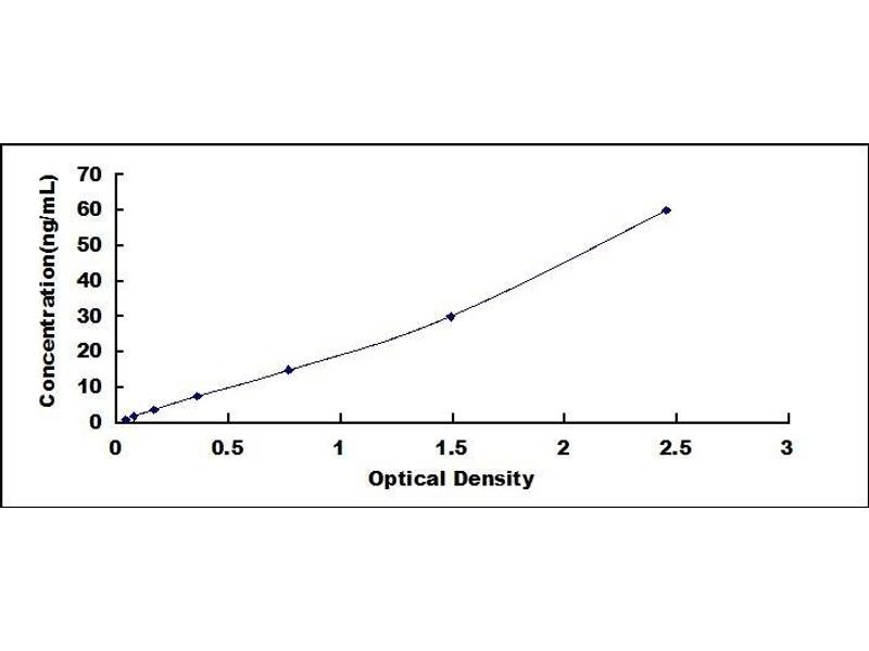 - Standard - Reconstitute the Standard with 1.0 mL of Standard Diluent, keep for 10 minutes at room temperature, shake gently (not to foam). The concentration of the standard in the stock solution is 60 ng/mL. Prepare 7 tubes containing 0.5 mL Standard Diluent and produce a double dilution series. Mix each tube thoroughly before the next transfer. Set up 7 points of diluted standard such as 60 ng/mL, 30 ng/mL, 15 ng/mL, 7.5 ng/mL, 3.75 ng/mL, 1.88 ng/mL, 0.94 ng/mL, and the last microcentrifuge tube with Standard Diluent is the blank as 0 ng/mL.