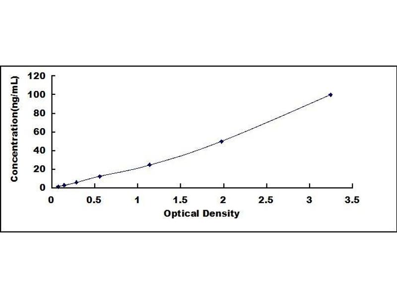 - Standard - Reconstitute the Standard with 1.0 mL of Standard Diluent, keep for 10 minutes at room temperature, shake gently (not to foam). The concentration of the standard in the stock solution is 1,000 ng/mL. Firstly dilute the stock solution to 100 ng/mL and the diluted standard serves as the highest standard (100 ng/mL). Then prepare 7 tubes containing 0.5 mL Standard Diluent and use the diluted standard to produce a double dilution series. Mix each tube thoroughly before the next transfer. Set up 7 points of diluted standard such as 100 ng/mL, 50 ng/mL, 25 ng/mL, 12.5 ng/mL, 6.25 ng/mL, 3.12 ng/mL, 1.56 ng/mL, and the last microcentrifuge tube with Standard Diluent is the blank as 0 ng/mL.