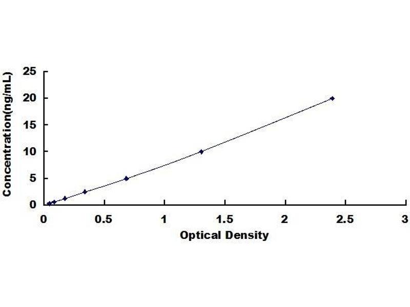 - Standard - Reconstitute the Standard with 1.0 mL of Standard Diluent, keep for 10 minutes at room temperature, shake gently (not to foam). The concentration of the standard in the stock solution is 20 ng/mL. Prepare 7 tubes containing 0.5 mL Standard Diluent and produce a double dilution series. Mix each tube thoroughly before the next transfer. Set up 7 points of diluted standard such as 20 ng/mL, 10 ng/mL, 5 ng/mL, 2.5 ng/mL, 1.25 ng/mL, 0.625 ng/mL, 0.312 ng/mL, and the last microcentrifuge tube with Standard Diluent is the blank as 0 ng/mL.