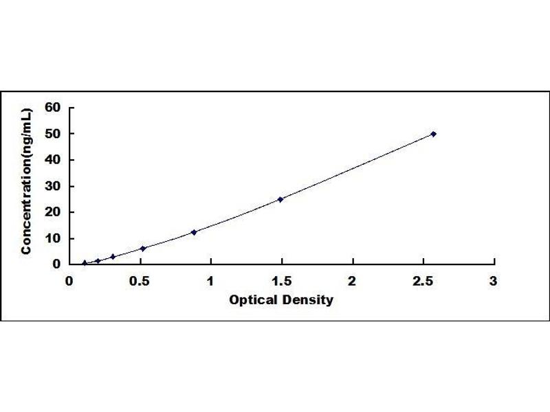 - Standard - Reconstitute the Standard with 1.0 mL of Standard Diluent, keep for 10 minutes at room temperature, shake gently (not to foam). The concentration of the standard in the stock solution is 100 ng/mL. Firstly dilute the stock solution to 50 ng/mL and the diluted standard serves as the highest standard (50 ng/mL). Then prepare 7 tubes containing 0.5 mL Standard Diluent and use the diluted standard to produce a double dilution series. Mix each tube thoroughly before the next transfer. Set up 7 points of diluted standard such as 50 ng/mL, 25 ng/mL, 12.5 ng/mL, 6.25 ng/mL, 3.12 ng/mL, 1.56 ng/mL, 0.78 ng/mL, and the last microcentrifuge tube with Standard Diluent is the blank as 0 ng/mL.