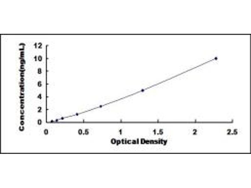 2. Standard - Reconstitute the Standard with 1.0 mL of Standard Diluent, keep for 10 minutes at room temperature, shake gently (not to foam). The concentration of the standard in the stock solution is 10 ng/mL. Prepare 7 tubes containing 0.5 mL Standard Diluent and produce a double dilution series. Mix each tube thoroughly before the next transfer. Set up 7 points of diluted standard such as 10 ng/mL, 5 ng/mL, 2.5 ng/mL, 1.25 ng/mL, 0.625 ng/mL, 0.312 ng/mL, 0.156 ng/mL, and the last microcentrifuge tube with Standard Diluent is the blank as 0 ng/mL.