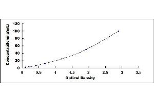 2. Standard - Reconstitute the Standard with 1.0 mL of Standard Diluent, keep for 10 minutes at room temperature, shake gently (not to foam). The concentration of the standard in the stock solution is 200 ng/mL. Firstly dilute the stock solution to 100 ng/mL and the diluted standard serves as the highest standard (100 ng/mL). Then prepare 7 tubes containing 0.5 mL Standard Diluent and use the diluted standard to produce a double dilution series. Mix each tube thoroughly before the next transfer. Set up 7 points of diluted standard such as 100 ng/mL, 50 ng/mL, 25 ng/mL, 12.5 ng/mL, 6.25 ng/mL, 3.12 ng/mL, 1.56 ng/mL, and the last microcentrifuge tube with Standard Diluent is the blank as 0 ng/mL.