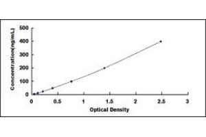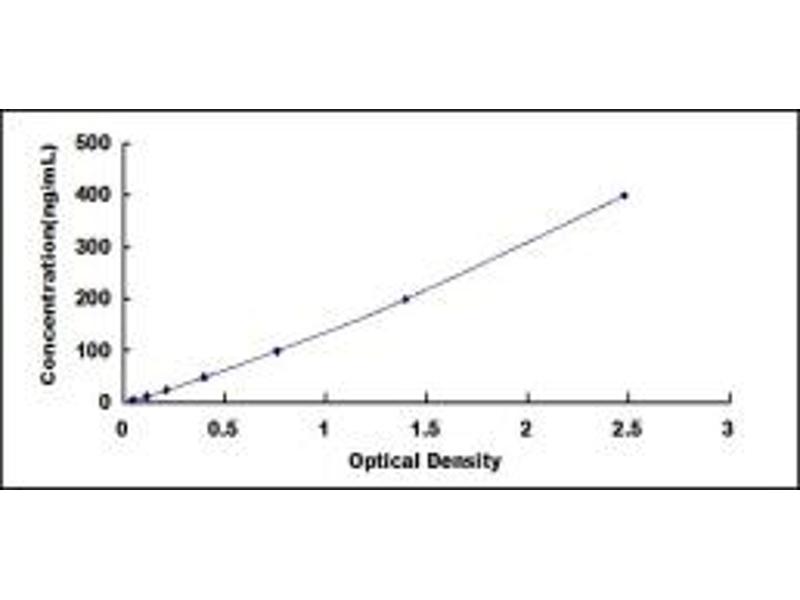 - Standard - Reconstitute the Standard with 1.0 mL of Standard Diluent, keep for 10 minutes at room temperature, shake gently (not to foam). The concentration of the standard in the stock solution is 2,000 ng/mL. Firstly dilute the stock solution to 400 ng/mL and the diluted standard serves as the highest standard (400 ng/mL). Then prepare 7 tubes containing 0.5 mL Standard Diluent and use the diluted standard to produce a double dilution series. Mix each tube thoroughly before the next transfer. Set up 7 points of diluted standard such as 400 ng/mL, 200 ng/mL, 100 ng/mL, 50 ng/mL, 25 ng/mL, 12.5 ng/mL, 6.25 ng/mL, and the last microcentrifuge tube with Standard Diluent is the blank as 0 ng/mL.