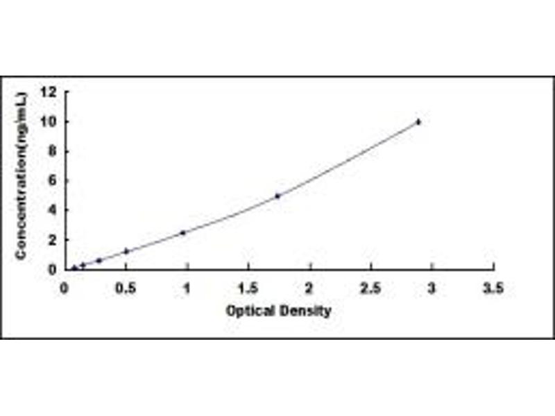 2. Standard - Reconstitute the Standard with 1.0 mL of Standard Diluent, keep for 10 minutes at room temperature, shake gently (not to foam). The concentration of the standard in the stock solution is 20 ng/mL. Firstly dilute the stock solution to 10 ng/mL and the diluted standard serves as the highest standard (10 ng/mL). Then prepare 7 tubes containing 0.5 mL Standard Diluent and use the diluted standard to produce a double dilution series. Mix each tube thoroughly before the next transfer. Set up 7 points of diluted standard such as 10 ng/mL, 5 ng/mL, 2.5 ng/mL, 1.25 ng/mL, 0.625 ng/mL, 0.312 ng/mL, 0.156 ng/mL, and the last microcentrifuge tube with Standard Diluent is the blank as 0 ng/mL.