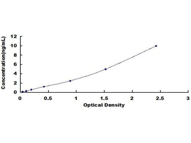 - Standard - Reconstitute the Standard with 1.0 mL of Standard Diluent, keep for 10 minutes at room temperature, shake gently (not to foam). The concentration of the standard in the stock solution is 40 ng/mL. Please firstly dilute the stock solution to 10ng/mL and the diluted standard serves as the highest standard (10ng/mL). Prepare 7 tubes containing 0.5 mL Standard Diluent and produce a double dilution series. Mix each tube thoroughly before the next transfer. Set up 7 points of diluted standard such as 10 ng/mL, 5 ng/mL, 2.5 ng/mL, 1.25 ng/mL, 0.625 ng/mL, 0.312 ng/mL, 0.156 ng/mL, and the last microcentrifuge tube with Standard Diluent is the blank as 0 ng/mL.