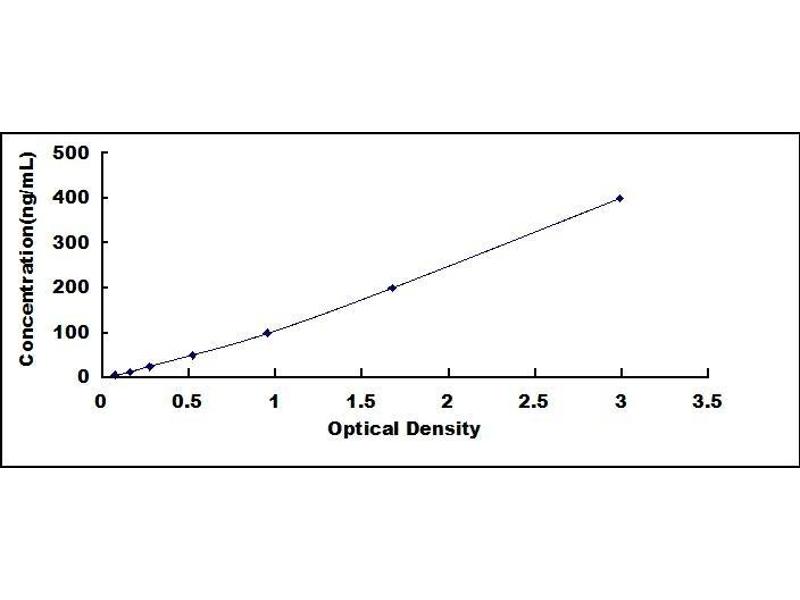 - Standard - Reconstitute the Standard with 1.0 mL of Standard Diluent, keep for 10 minutes at room temperature, shake gently (not to foam). The concentration of the standard in the stock solution is 400 ng/mL. Prepare 7 tubes containing 0.5 mL Standard Diluent and produce a double dilution series. Mix each tube thoroughly before the next transfer. Set up 7 points of diluted standard such as 400 ng/mL, 200 ng/mL, 100 ng/mL, 50 ng/mL, 25 ng/mL, 12.5 ng/mL, 6.25 ng/mL, and the last microcentrifuge tube with Standard Diluent is the blank as 0 ng/mL.