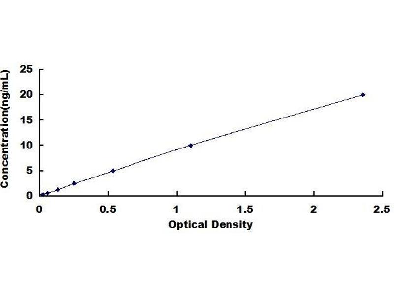 - Standard - Reconstitute the Standard with 1.0 mL of Standard Diluent, keep for 10 minutes at room temperature, shake gently (not to foam). The concentration of the standard in the stock solution is 40 ng/mL. Firstly dilute the stock solution to 20 ng/mL and the diluted standard serves as the highest standard (20 ng/mL). Then prepare 7 tubes containing 0.5 mL Standard Diluent and use the diluted standard to produce a double dilution series. Mix each tube thoroughly before the next transfer. Set up 7 points of diluted standard such as 20 ng/mL, 10 ng/mL, 5 ng/mL, 2.5 ng/mL, 1.25 ng/mL, 0.625 ng/mL, 0.312 ng/mL, and the last microcentrifuge tube with Standard Diluent is the blank as 0 ng/mL.