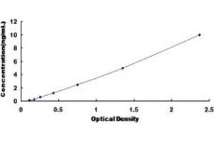 2. Standard - Reconstitute the Standard with 1.0 mL of Standard Diluent, keep for 10 minutes at room temperature, shake gently (not to foam). The concentration of the standard in the stock solution is 10 ng/mL. Prepare 7 tubes containing 0.5 mL Standard Diluent and produce a double dilution series. Mix each tube thoroughly before the next transfer. Set up 7 points of diluted standard such as 10 ng/mL, 5 ng/mL, 2.5 ng/mL, 1.25 ng/mL, 0.625 ng/mL, 0.312 ng/mL, 0.156 ng/mL, and the last microcentrifuge tube with Standard Diluent is the blank as 0 ng/mL.
