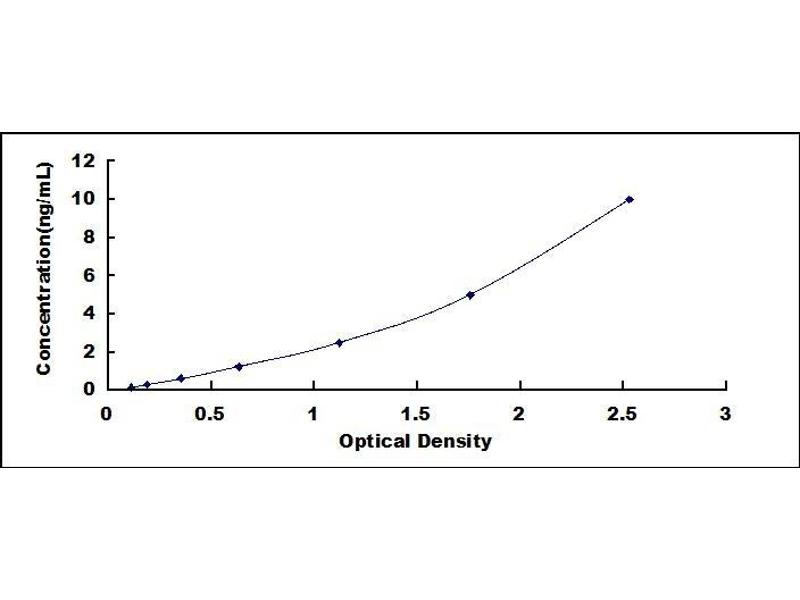 - Standard - Reconstitute the Standard with 0.5mL of Standard Diluent, kept for 10 minutes at room temperature, shake gently (not to foam). The concentration of the standard in the stock solution is 10ng/mL. Prepare 7 tubes containing 0.25mL Standard Diluent and produce a double dilution. Mix each tube thoroughly before the next transfer. Set up 7 points of diluted standard such as 10ng/mL, 5ng/mL, 2.5ng/mL, 1.25ng/mL, 0.625ng/mL, 0.312ng/mL, 0.156ng/mL, and the last tube with Standard Diluent is the blank as 0ng/mL.