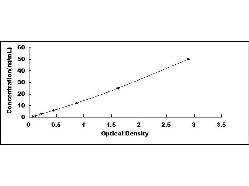 - Standard - Reconstitute the Standard with 1.0 mL of Standard Diluent, keep for 10 minutes at room temperature, shake gently (not to foam). The concentration of the standard in the stock solution is 100 ng/mL. Firstly dilute the stock solution to 50 ng/mL and the diluted standard serves as the highest standard (50 ng/mL). Then prepare 7 tubes containing 0.5 mL Standard Diluent and use the diluted standard to produce a double dilution series. Mix each tube thoroughly before the next transfer. Set up 7 points of diluted standard such as 50 ng/mL, 25 ng/mL, 12.5 ng/mL, 6.25 ng/mL, 3.12 ng/mL, 1.56 ng/mL, 0.78 ng/mL, and the last microcentrifuge tube with Standard Diluent is the blank as 0 ng/mL.
