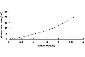 - Standard - Reconstitute the Standard with 1.0 mL of Standard Diluent, kept for 10 minutes at room temperature, shake gently (not to foam). The concentration of the standard in the stock solution is 80 ng/mL. First dilute the stock solution to 20 ng/mL and the diluted standard serves as the highest standard (20ng/mL). Then prepare 7 tubes containing 0.5mL Standard Diluent and use the diluted standard to produce a double dilution series. Mix each tube thoroughly before the next transfer. Set up 7 points of diluted standard such as 20ng/mL, 10ng/mL, 5ng/mL, 2.5ng/mL, 1.25ng/mL, 0.625ng/mL, 0.312ng/mL, and the last tube with Standard Diluent is the blank as 0ng/mL.