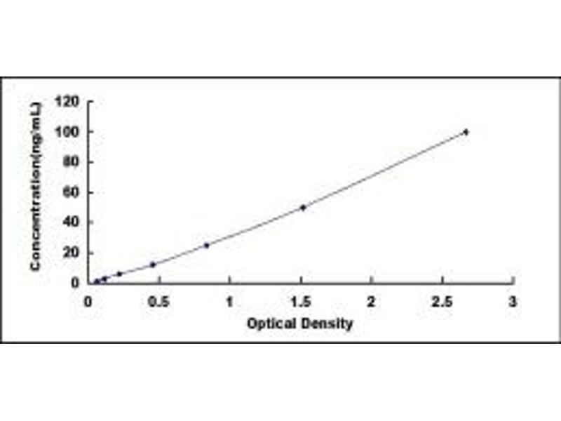 - Standard - Reconstitute the Standard with 1.0 mL of Standard Diluent, keep for 10 minutes at room temperature, shake gently (not to foam). The concentration of the standard in the stock solution is 200 ng/mL. Firstly dilute the stock solution to 100 ng/mL and the diluted standard serves as the highest standard (100 ng/mL). Then prepare 7 tubes containing 0.5 mL Standard Diluent and use the diluted standard to produce a double dilution series. Mix each tube thoroughly before the next transfer. Set up 7 points of diluted standard such as 100 ng/mL, 50 ng/mL, 25 ng/mL, 12.5 ng/mL, 6.25 ng/mL, 3.12 ng/mL, 1.56 ng/mL, and the last microcentrifuge tube with Standard Diluent is the blank as 0 ng/mL.