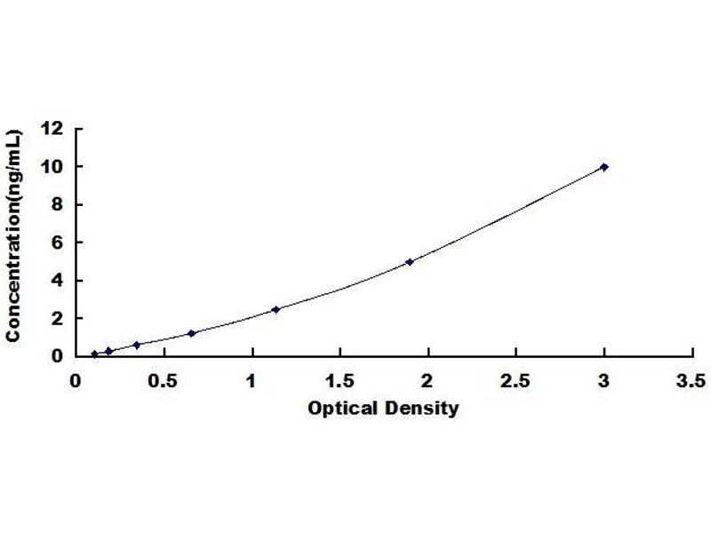 - Standard - Reconstitute the Standard with 1.0 mL of Standard Diluent, keep for 10 minutes at room temperature, shake gently (not to foam). The concentration of the standard in the stock solution is 50 ng/mL. Firstly dilute the stock solution to 10 ng/mL and the diluted standard serves as the highest standard (10 ng/mL). Then prepare 7 tubes containing 0.5 mL Standard Diluent and use the diluted standard to produce a double dilution series. Mix each tube thoroughly before the next transfer. Set up 7 points of diluted standard such as 10 ng/mL, 5 ng/mL, 2.5 ng/mL, 1.25 ng/mL, 0.625 ng/mL, 0.312 ng/mL, 0.156 ng/mL, and the last microcentrifuge tube with Standard Diluent is the blank as 0 ng/mL.