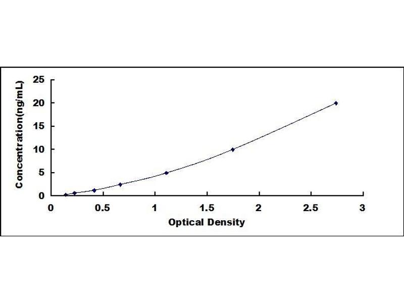 - Standard - Reconstitute the Standard with 1.0 mL of Standard Diluent, keep for 10 minutes at room temperature, shake gently (not to foam). The concentration of the standard in the stock solution is 40 ng/mL. Firstly dilute the stock solution to 20 ng/mL and the diluted standard serves as the highest standard (20 ng/mL). Then prepare 7 tubes containing 0.5 mL Standard Diluent and use the diluted standard to produce a double dilution series. Mix each tube thoroughly before the next transfer. Set up 7 points of diluted standard such as 20 ng/mL, 10 ng/mL, 5 ng/mL, 2.5 ng/mL, 1.25 ng/mL, 0.625 ng/mL, 0.312 ng/mL, and the last microcentrifuge tube with Standard Diluent is the blank as 0 ng/mL.