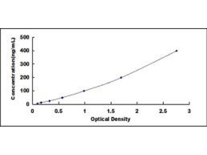 - Standard - Reconstitute the Standard with 1.0 mL of Standard Diluent, keep for 10 minutes at room temperature, shake gently (not to foam). The concentration of the standard in the stock solution is 800 ng/mL. Firstly dilute the stock solution to 400 ng/mL and the diluted standard serves as the highest standard (400 ng/mL). Then prepare 7 tubes containing 0.5 mL Standard Diluent and use the diluted standard to produce a double dilution series. Mix each tube thoroughly before the next transfer. Set up 7 points of diluted standard such as 400 ng/mL, 200 ng/mL, 100 ng/mL, 50 ng/mL, 25 ng/mL, 12.5 ng/mL, 6.25 ng/mL, and the last microcentrifuge tube with Standard Diluent is the blank as 0 ng/mL.