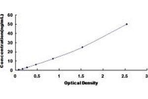 - Standard - Reconstitute the Standard with 1.0 mL of Standard Diluent, keep for 10 minutes at room temperature, shake gently (not to foam). The concentration of the standard in the stock solution is 100 ng/mL. Firstly dilute the stock solution to 50 ng/mL and the diluted standard serves as the highest standard (50 ng/mL). Then prepare 7 tubes containing 0.5 mL Standard Diluent and use the diluted standard to produce a double dilution series. Mix each tube thoroughly before the next transfer. Set up 7 points of diluted standard such as 50 ng/mL, 25 ng/mL, 12.5 ng/mL, 6.25 ng/mL, 3.12 ng/mL, 1.56 ng/mL, 0.78 ng/mL, and the last microcentrifuge tube with Standard Diluent is the blank as 0 ng/mL.