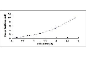 2. Standard - Reconstitute the Standard with 1.0 mL of Standard Diluent, keep for 10 minutes at room temperature, shake gently (not to foam). The concentration of the standard in the stock solution is 40 ng/mL. Firstly dilute the stock solution to 10 ng/mL and the diluted standard serves as the highest standard (10 ng/mL). Then prepare 7 tubes containing 0.5 mL Standard Diluent and use the diluted standard to produce a double dilution series. Mix each tube thoroughly before the next transfer. Set up 7 points of diluted standard such as 10 ng/mL, 5 ng/mL, 2.5 ng/mL, 1.25 ng/mL, 0.625 ng/mL, 0.312 ng/mL, 0.156 ng/mL, and the last microcentrifuge tube with Standard Diluent is the blank as 0 ng/mL.