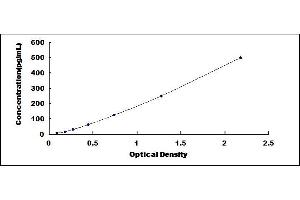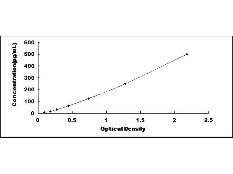 In order to make the calculation easier, we plot the O.D. value of the standard (X-axis) against the known concentration of the standard (Y-axis), although concentration is the independent variable and O.D. value is the dependent variable. However, the O.D. values of the standard curve may vary according to the conditions of assay performance (e.g. operator, pipetting technique, washing technique or temperature effects), plotting log of the data to establish standard curve for each test is recommended. Typical standard curve below is provided for reference only. -