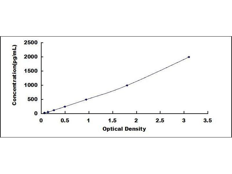 In order to make the calculation easier, we plot the O.D. value of the standard (X-axis) against the known concentration of the standard (Y-axis), although concentration is the independent variable and O.D. value is the dependent variable. However, the O.D. values of the standard curve may vary according to the conditions of assay performance (e.g. operator, pipetting technique, washing technique or temperature effects), plotting log of the data to establish standard curve for each test is recommended. Typical standard curve below is provided for reference only. -