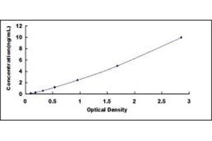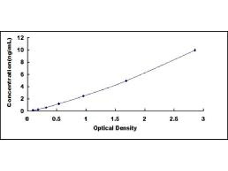 2. Standard - Reconstitute the Standard with 1.0 mL of Standard Diluent, keep for 10 minutes at room temperature, shake gently (not to foam). The concentration of the standard in the stock solution is 40 ng/mL. Firstly dilute the stock solution to 10 ng/mL and the diluted standard serves as the highest standard (10 ng/mL). Then prepare 7 tubes containing 0.5 mL Standard Diluent and use the diluted standard to produce a double dilution series. Mix each tube thoroughly before the next transfer. Set up 7 points of diluted standard such as 10 ng/mL, 5 ng/mL, 2.5 ng/mL, 1.25 ng/mL, 0.625 ng/mL, 0.312 ng/mL, 0.156 ng/mL, and the last microcentrifuge tube with Standard Diluent is the blank as 0 ng/mL.