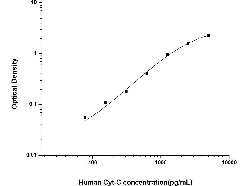 Intra-assay Precision (Precision within an assay): 3 samples with low, mid range and high level Human Cyt-C were tested 20 times on one plate, respectively. Inter-assay Precision (Precision between assays): 3 samples with low, mid range and high level Human Cyt-C were tested on 3 different plates, 20 replicates in each plate. Both intra-CV and inter-CV are < 10 %.