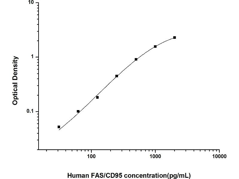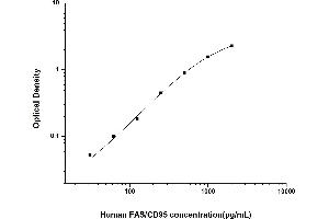 Intra-assay Precision (Precision within an assay): 3 samples with low, mid range and high level Human FAS/CD95 were tested 20 times on one plate, respectively. Inter-assay Precision (Precision between assays): 3 samples with low, mid range and high level Human FAS/CD95 were tested on 3 different plates, 20 replicates in each plate. Both intra-CV and inter-CV are < 10 %.