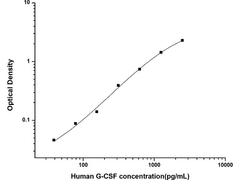 Intra-assay Precision (Precision within an assay): 3 samples with low, mid range and high level Human G-CSF were tested 20 times on one plate, respectively. Inter-assay Precision (Precision between assays): 3 samples with low, mid range and high level Human G-CSF were tested on 3 different plates, 20 replicates in each plate. Both intra-CV and inter-CV are < 10 %.