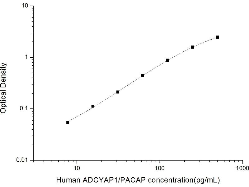 Intra-assay Precision (Precision within an assay): 3 samples with low, mid range and high level Human ADCYAP1/PACAP were tested 20 times on one plate, respectively. Inter-assay Precision (Precision between assays): 3 samples with low, mid range and high level Human ADCYAP1/PACAP were tested on 3 different plates, 20 replicates in each plate. Both intra-CV and inter-CV are < 10 %.