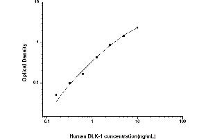 Intra-assay Precision (Precision within an assay): 3 samples with low, mid range and high level Human DLK-1 were tested 20 times on one plate, respectively. Inter-assay Precision (Precision between assays): 3 samples with low, mid range and high level Human DLK-1 were tested on 3 different plates, 20 replicates in each plate. Both intra-CV and inter-CV are < 10 %.