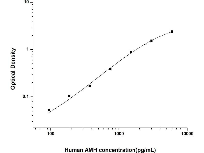 Intra-assay Precision (Precision within an assay): 3 samples with low, mid range and high level Human AMH were tested 20 times on one plate, respectively. Inter-assay Precision (Precision between assays): 3 samples with low, mid range and high level Human AMH were tested on 3 different plates, 20 replicates in each plate. Both intra-CV and inter-CV are < 10 %.