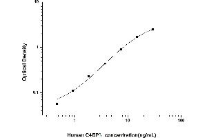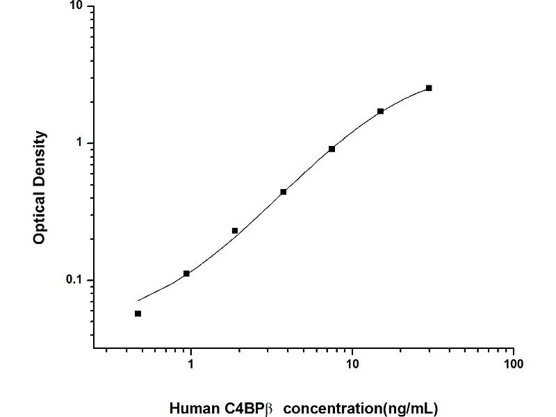 Intra-assay Precision (Precision within an assay): 3 samples with low, mid range and high level Human C4BPβ were tested 20 times on one plate, respectively. Inter-assay Precision (Precision between assays): 3 samples with low, mid range and high level Human C4BPβ were tested on 3 different plates, 20 replicates in each plate. Both intra-CV and inter-CV are < 10 %.