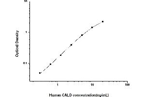 Inter-assay Precision (Precision between assays): 3 samples with low, mid range and high level Human CALD were tested on 3 different plates, 20 replicates in each plate.