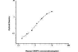 Intra-assay Precision (Precision within an assay): 3 samples with low, mid range and high level Human CASP4 were tested 20 times on one plate, respectively. Inter-assay Precision (Precision between assays): 3 samples with low, mid range and high level Human CASP4 were tested on 3 different plates, 20 replicates in each plate. Both intra-CV and inter-CV are < 10 %.