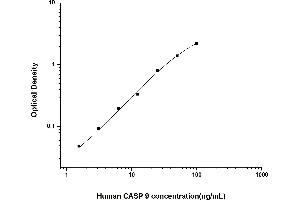 Intra-assay Precision (Precision within an assay): 3 samples with low, mid range and high level Human CASP9 were tested 20 times on one plate, respectively. Inter-assay Precision (Precision between assays): 3 samples with low, mid range and high level Human CASP9 were tested on 3 different plates, 20 replicates in each plate. Both intra-CV and inter-CV are < 10 %.