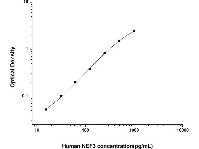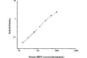 Intra-assay Precision (Precision within an assay): 3 samples with low, mid range and high level Human NEF3 were tested 20 times on one plate, respectively. Inter-assay Precision (Precision between assays): 3 samples with low, mid range and high level Human NEF3 were tested on 3 different plates, 20 replicates in each plate. Both intra-CV and inter-CV are < 10 %.