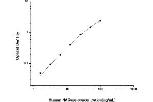 Intra-assay Precision (Precision within an assay): 3 samples with low, mid range and high level Human NAGase were tested 20 times on one plate, respectively. Inter-assay Precision (Precision between assays): 3 samples with low, mid range and high level Human NAGase were tested on 3 different plates, 20 replicates in each plate. Both intra-CV and inter-CV are < 10 %.
