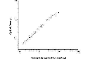 Intra-assay Precision (Precision within an assay): 3 samples with low, mid range and high level Human Slit2 were tested 20 times on one plate, respectively. Inter-assay Precision (Precision between assays): 3 samples with low, mid range and high level Human Slit2 were tested on 3 different plates, 20 replicates in each plate. Both intra-CV and inter-CV are < 10 %.