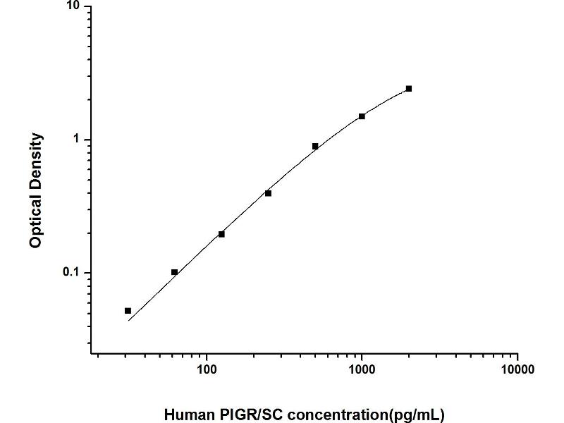 Intra-assay Precision (Precision within an assay): 3 samples with low, mid range and high level Human PIGR/SC were tested 20 times on one plate, respectively. Inter-assay Precision (Precision between assays): 3 samples with low, mid range and high level Human PIGR/SC were tested on 3 different plates, 20 replicates in each plate. Both intra-CV and inter-CV are < 10 %.