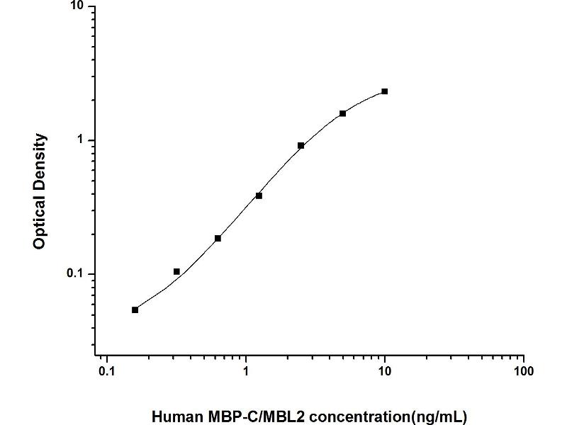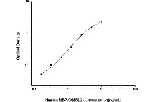 Intra-assay Precision (Precision within an assay): 3 samples with low, mid range and high level Human MBP-C/MBL2 were tested 20 times on one plate, respectively. Inter-assay Precision (Precision between assays): 3 samples with low, mid range and high level Human MBP-C/MBL2 were tested on 3 different plates, 20 replicates in each plate. Both intra-CV and inter-CV are < 10 %.
