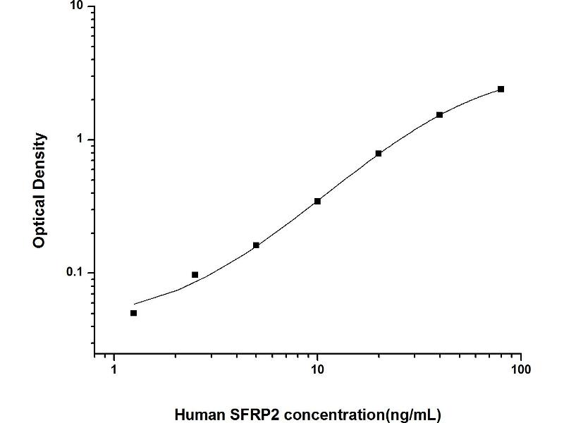 Intra-assay Precision (Precision within an assay): 3 samples with low, mid range and high level Human SFRP2 were tested 20 times on one plate, respectively. Inter-assay Precision (Precision between assays): 3 samples with low, mid range and high level Human SFRP2 were tested on 3 different plates, 20 replicates in each plate. Both intra-CV and inter-CV are < 10 %.