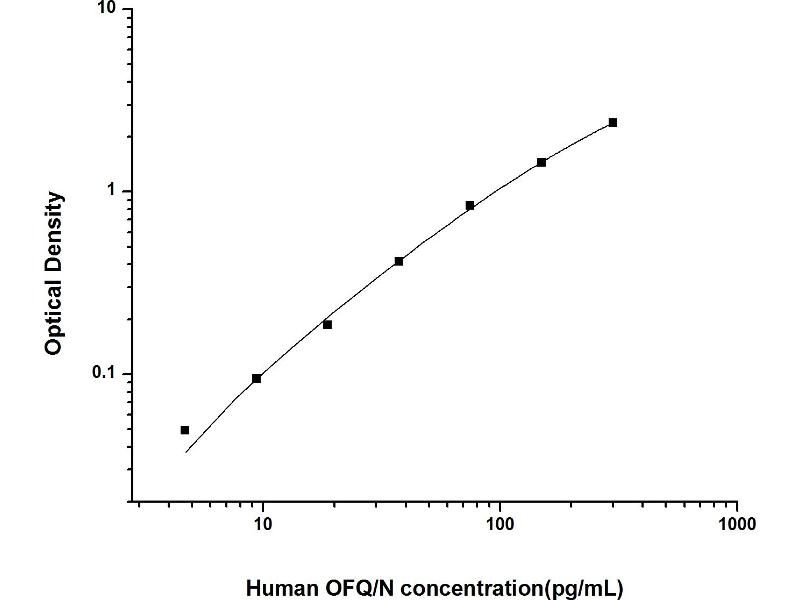 Intra-assay Precision (Precision within an assay): 3 samples with low, mid range and high level Human OFQ/N were tested 20 times on one plate, respectively. Inter-assay Precision (Precision between assays): 3 samples with low, mid range and high level Human OFQ/N were tested on 3 different plates, 20 replicates in each plate. Both intra-CV and inter-CV are < 10 %.